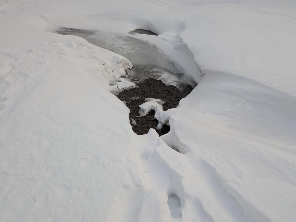 When I got to the Grey turnoff, I was near the back of the pack, and we confirmed that we were splitting the 13 into a group of 8 and 5. This worked out well for the 5 of us in the back. The first group took care of trail breaking up Grey, and I am so thankful to them. I can now say that Grey is broken out with a good trench the whole way up, but it'll likely be blown in on the top.