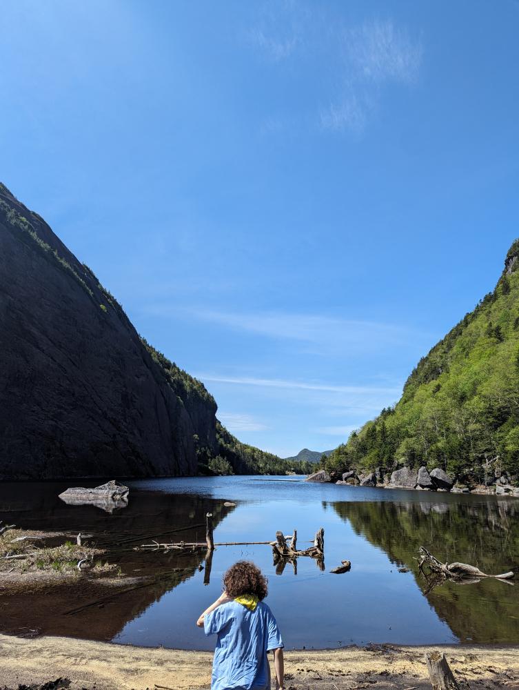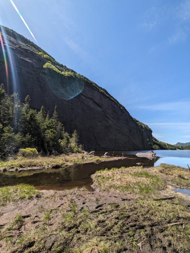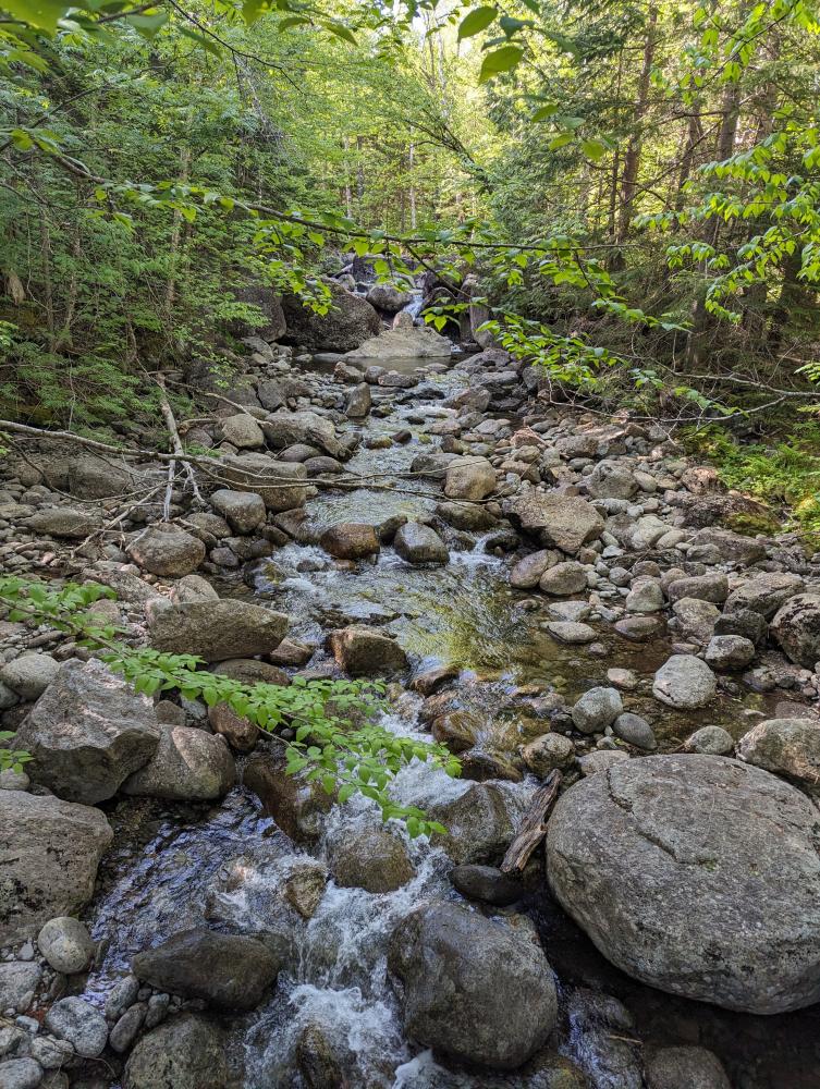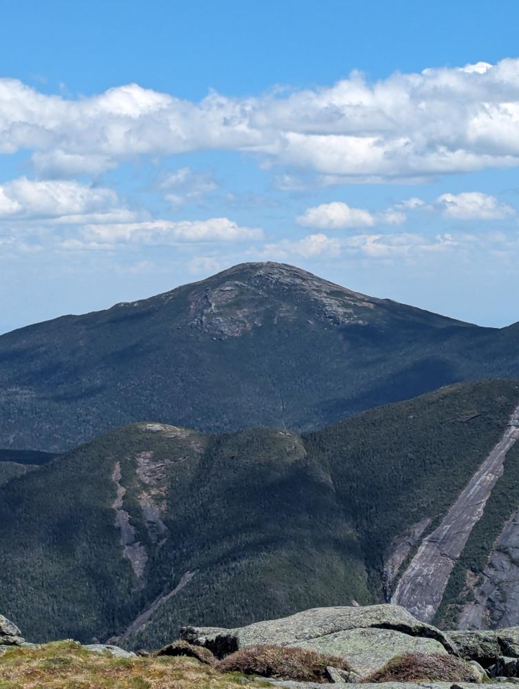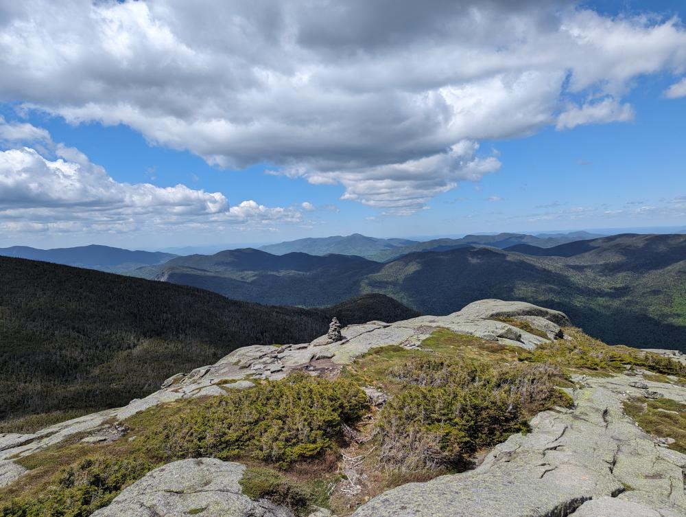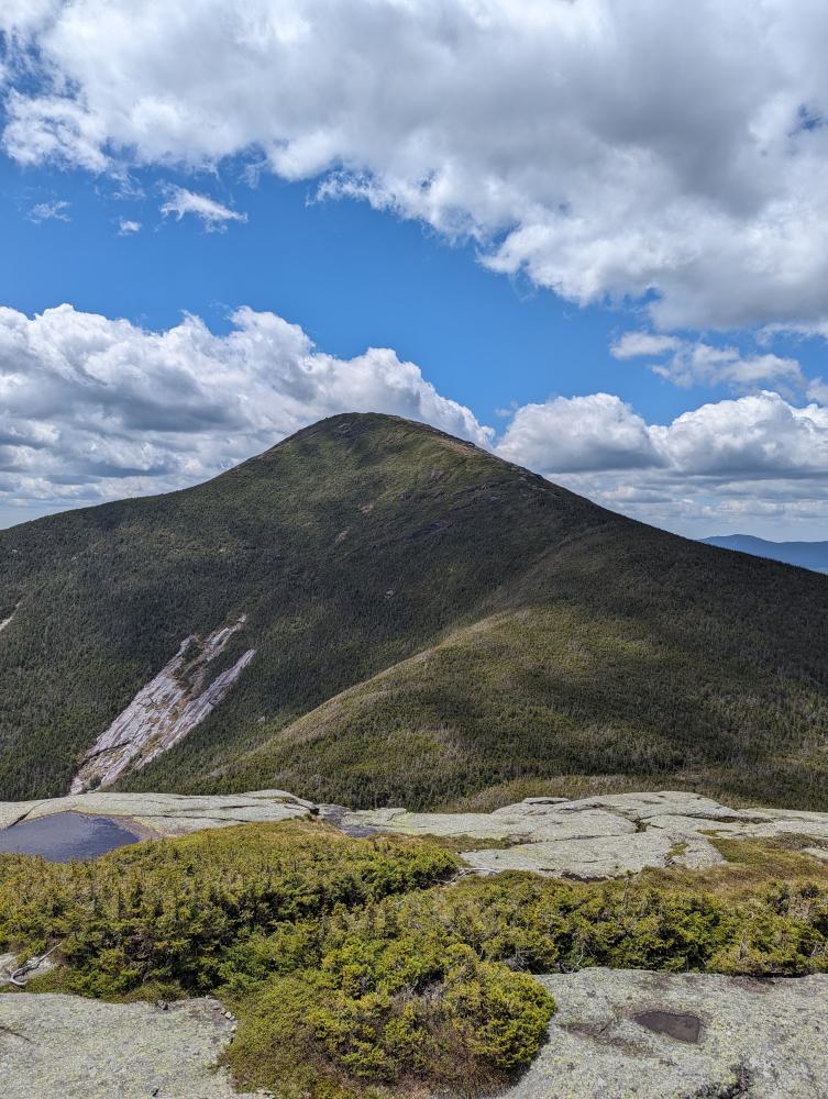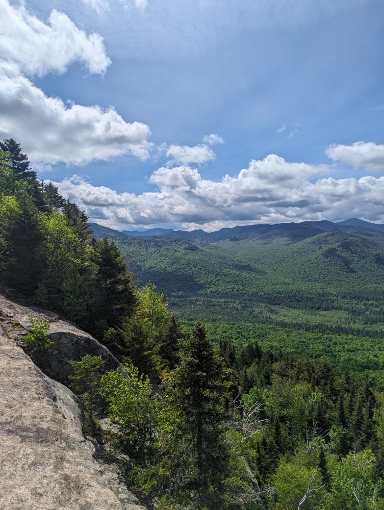We drove the mile or so down to Loj, paid for the parking, and then headed out on the trail to do the MacIntyre range. The first 2 miles went quick, but I realized it was going to be a slower hike than I've done before, which was a really good thing for me. We reached the rocky part of the trail and stopped for a bit a MacIntyre falls, one of my favorite places on this hike. We then took it slow up the scrambles and slabs to the junction with Wright. We decide to tackle Wright first, so up the slippery slabs to the wall climb. I show my partner how to get up it, and bam, the wind started. The hat had to come off and it was high winds the rest of the way up. We made it, slowly as we both needed to take our time, and we reached the top to absolutely beautiful views and high winds. Coming back down was just as slow because of the wind, but we made it, to the wall, scootched our way down, and somehow avoided slipping on the slabs back to the junction.