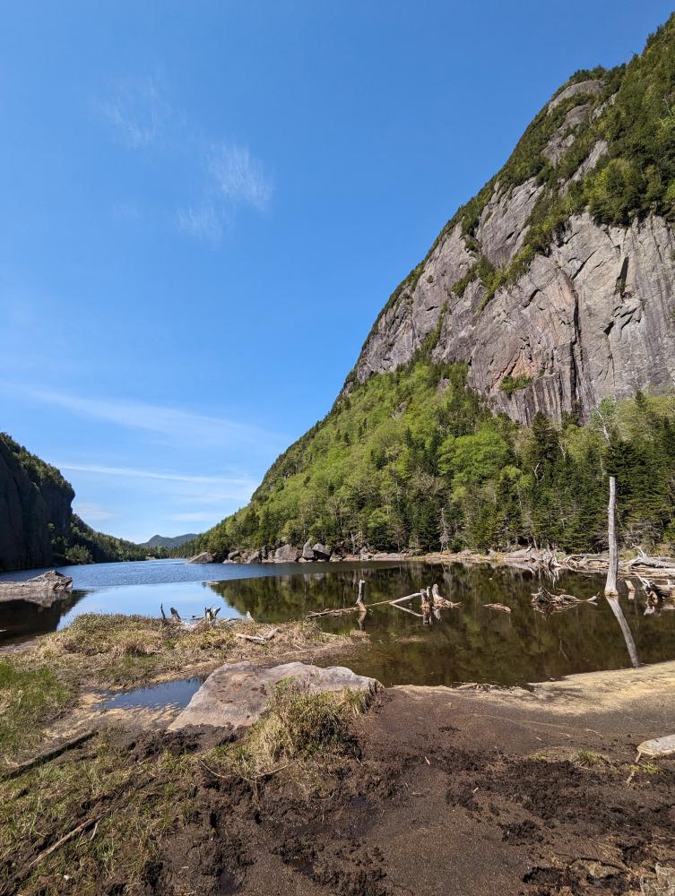 A while ago, a friend from my ADF days and I were talking about hiking as she had started hiking the Whites in New Hampshire, and I had already finished my 46er. I told her that I would love to show her "my" mountains some day, whenever she wanted to. Well, this memorial day was the time for me to show her. My original plans were to come in from the south, backpack into the Lake Colden/Flowed Lands area and grab some peaks out of there like Marshal, Marcy, Skylight, Grey, and Colden, but the one place she had to go was Avalanche Pass/Lake. After how I felt post Vanderwacker, I realized I was not in shape for that 4.5 mile hike in to the Flowed Lands with a full pack... it's "flat", but there still is a good hill for the last mile before the first camp sites, and my legs were not happy. Could I have done it? probably, but why risk it?