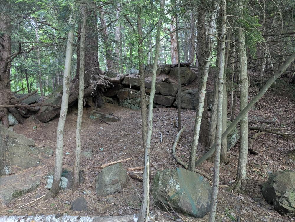 For this peak to count, you have to start in the middle of town at Berkeley Green. This rule was added in a couple years ago because of the popularity of the challenge being more than the trailhead parking can handle, and with the trailhead in a residential area, that's an issue. So, started with a 1.3 mile flat road walk to the trailhead, and then hike up the peak. The marked trail is the right hand trail when you get to the trail junction, as it's designated by a yellow arrow, and eventually a few red disks. The trail itself is rather obvious, but poorly marked. It is also somewhat eroded, but not as bad as those in the high peaks. It is very steep and rocky, which reminded me of a high peak trail.