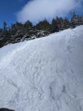 Saturday, I went and did my first winter 46er. I decided on Cascade and Porter because of the distance (shortest for all the peaks) and because I knew the trail somewhat well. I got at the trailhead about 9, got my boots, jacket, etc on and started to walk from the second parking area to the trailhead, getting about 3/4 of the way there, to realize I didn't have my gloves. D'oh! I get my gloves and go back. Now this trail in the summer is a good mix of steep and flat with a lot of rocks to navigate over, and one really good scramble before you get to the bald peak. Well, the overall steep vs flat obviously didn't change. The rocks though largely disappeared making it a relatively smooth trail up the mountain. What I have been promised of the trails being "easier" was true. There were a few places where there were larger boulders in the trail that were iced over, but not bad to get up. The one big scramble that's a pain in the summer was all snowed over and with proper traction dead simple to get up.