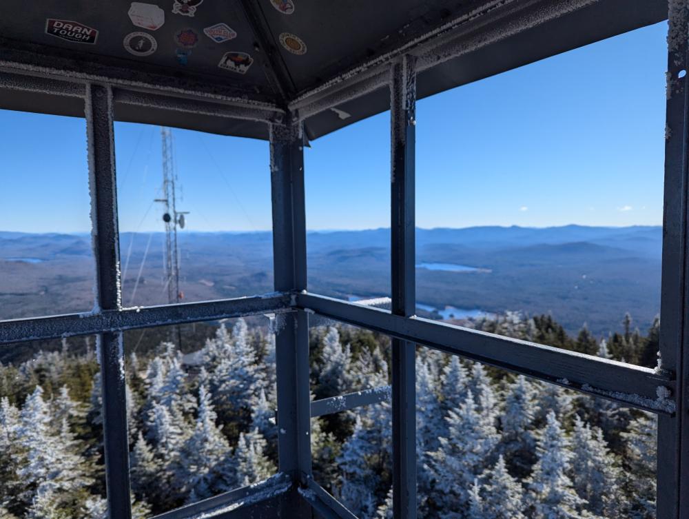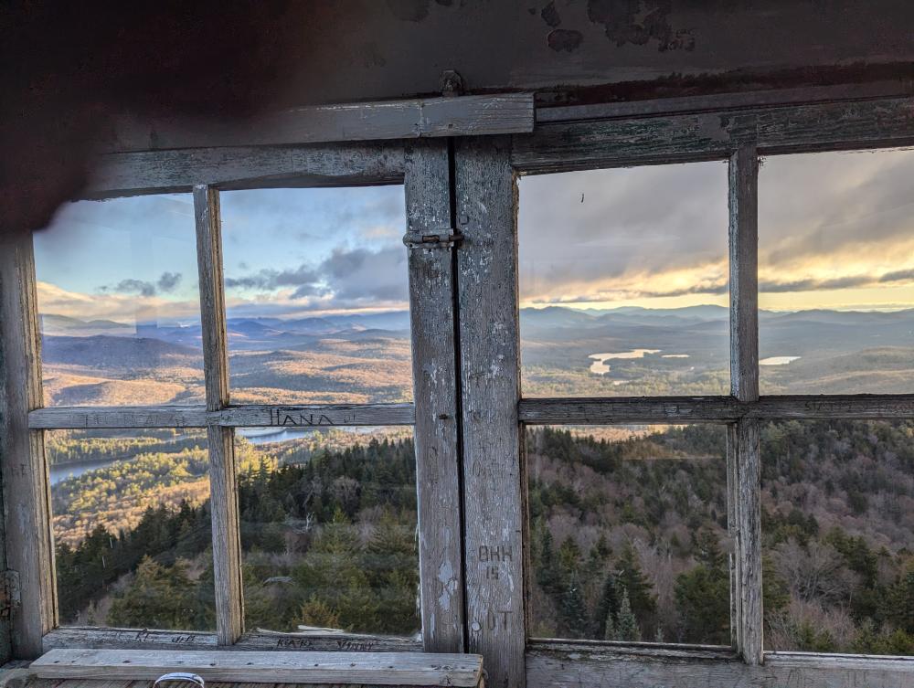 In my quest to do all the fire towers, and my desire to get used to my heavier winter pack, I did 2 fire towers. First up was Goodnow. This is maintained by SUNY ESF and last winter they did some logging to study different methods of reforesting. That was clear on the way in as you walk through the experiment. But overall, the trail was a lovely trail, gentle, and the views from the top were just wonderful. I didn't get on top in time to see the sunrise, but I did see it on the surrounding hills. This is for sure a repeat hike for me in the future. I also had a first sighting for me on this trail. On my way out I saw this beautiful canine heading up the trail towards me. Had to be 70-80 pounds in size, bushy tail, grey and brown in color. It saw me and then ran off the trail. I shortly realized there was no human following the pup, and started looking around to see if there were any others... Yep, it was a coyote, and thankfully not a pack.... or at least not a pack I saw.