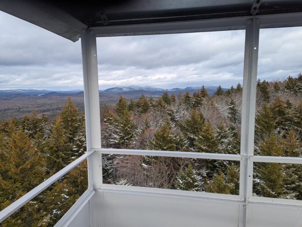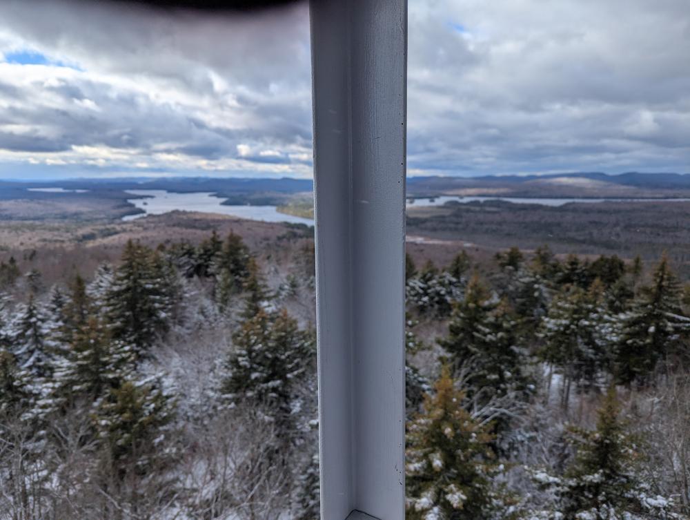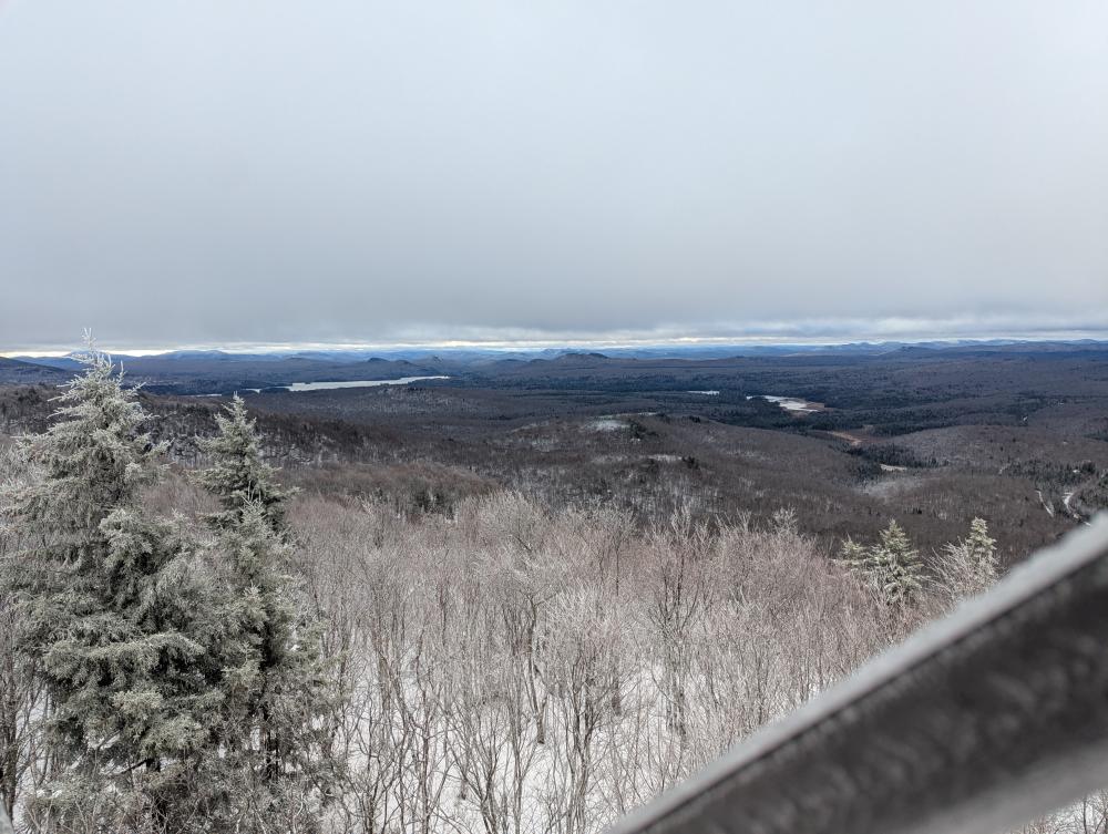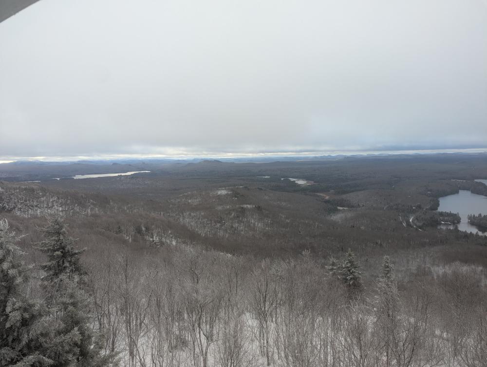A final hike was the Buck Mountain Fire Tower. This is not to be confused with Buck Mountain on Lake George (too many mountains with duplicate names in the park, much less state). This trail was wet. Then it climbed. At the end was a bunch of wooden steps. That was iffy in the snowy conditions I was hiking in. I got up it just fine though, and found what felt like a brand new tower. The views were once again beautiful. Trying to come down the stairs was fun though... slow and steady and I made it though.