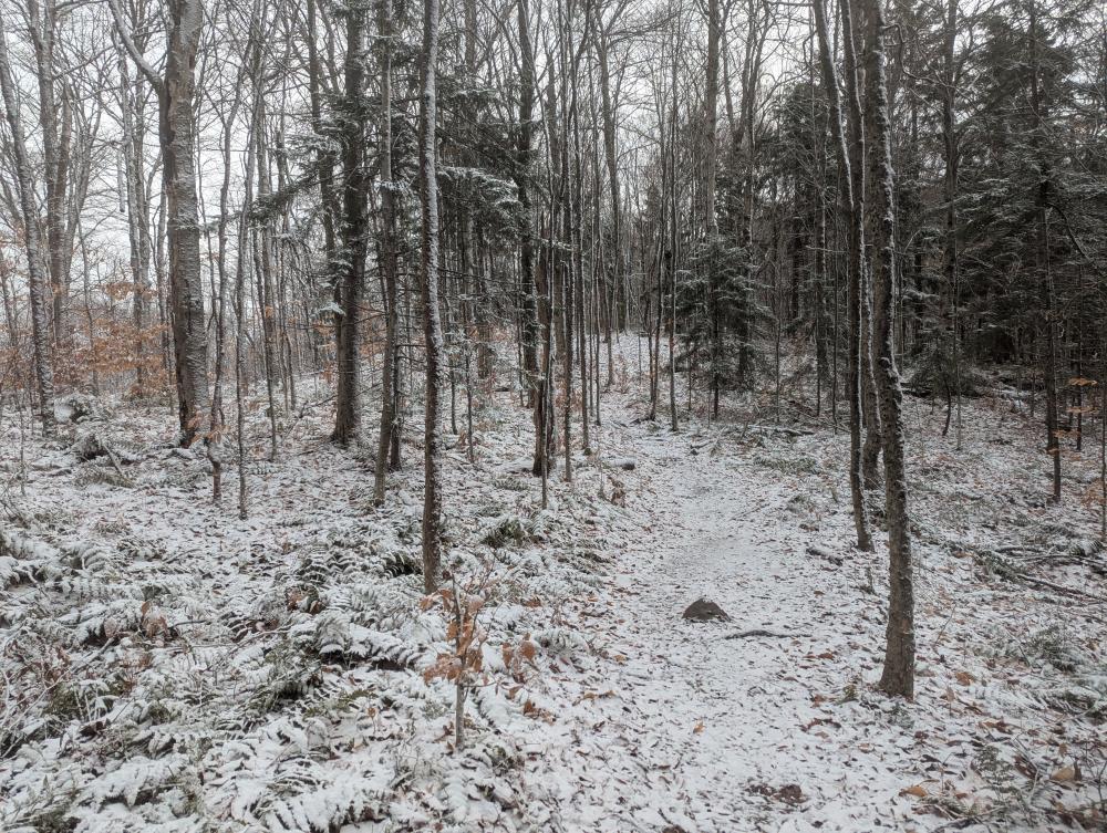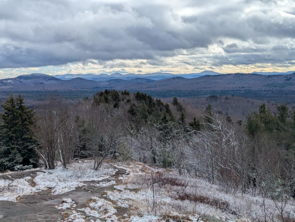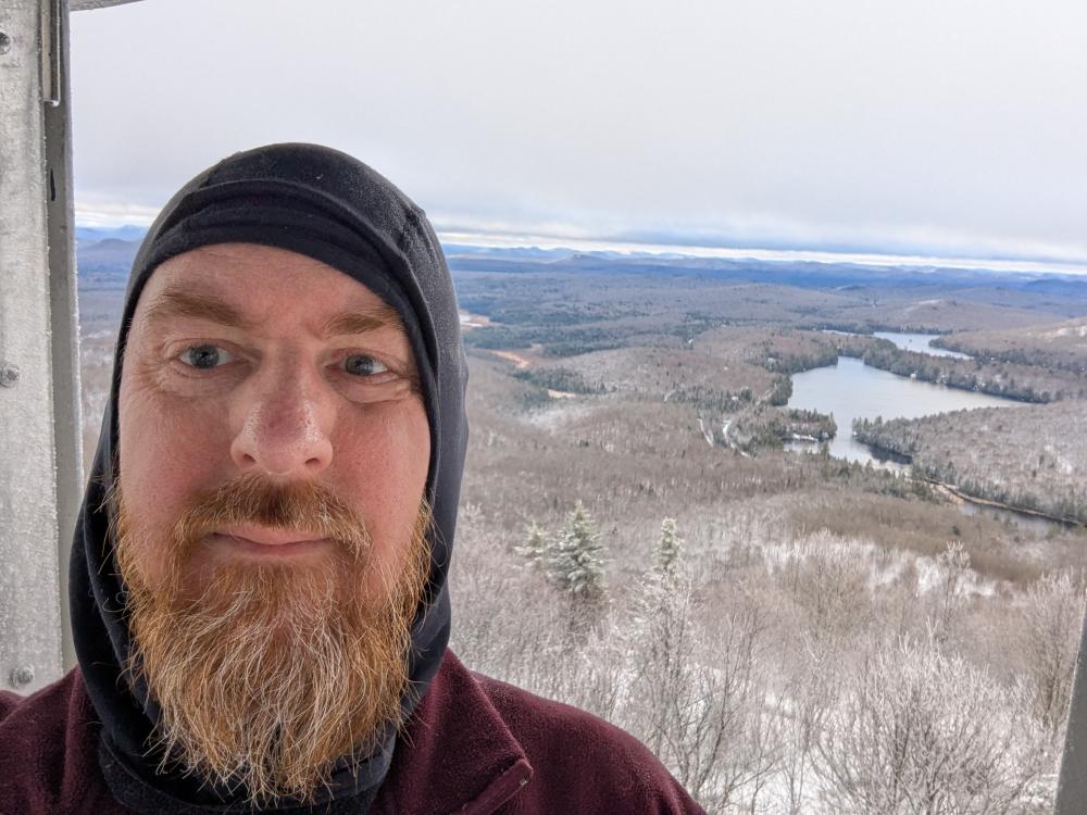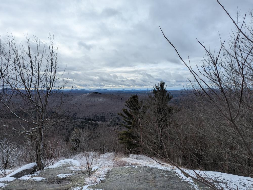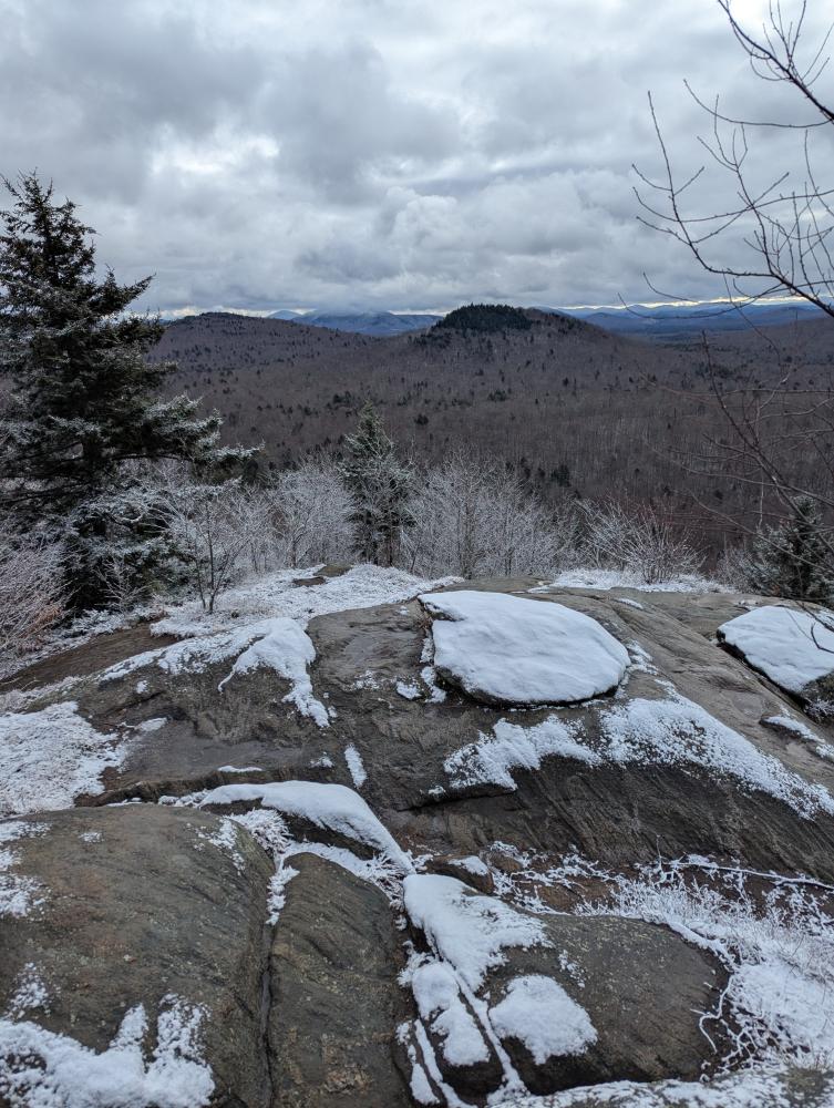 A final hike was the Buck Mountain Fire Tower. This is not to be confused with Buck Mountain on Lake George (too many mountains with duplicate names in the park, much less state). This trail was wet. Then it climbed. At the end was a bunch of wooden steps. That was iffy in the snowy conditions I was hiking in. I got up it just fine though, and found what felt like a brand new tower. The views were once again beautiful. Trying to come down the stairs was fun though... slow and steady and I made it though.