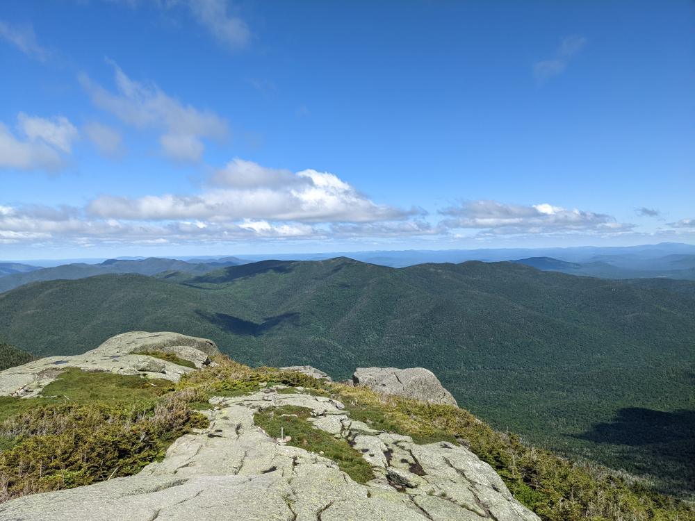 Sunday was a different animal. It was clear skies and cold. The trail up to Wright was in pretty good condition. The mud was minimal, the scrambles were mostly dry. Overall, I can't complain about the trail. As we got close to the trail junction to Wright, the views opened up, and it looked icy on Algonquin. We heard shortly there after that it was icy on Algonquin. At that point, we decided that our day would just be Wright, not the whole range as originally planned. We found out later that the ice was only on the trees and not on the trail itself. Still, the hike up to Wright was blustery when we got out of the trees, and was oddly calmer on top. Needless to say, the views from Wright were beautiful. In searching for the plaque memorializing the crew of the bomber that crashed on the mountain, we did see a little bit of the wreckage, but we didn't actually find the plaque.... it was too windy and cold to spend too much time to search.